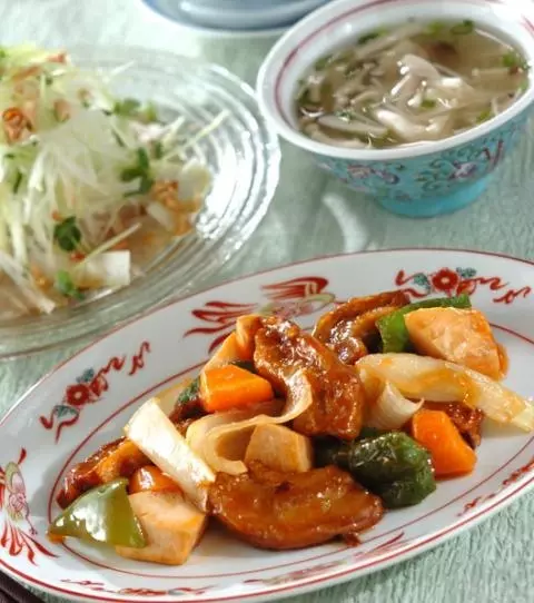 お麩なのにお肉の様な食感に驚きます! ジューシーでヘルシーな酢豚を楽しんで。