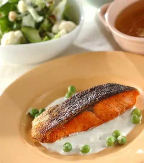 ヨーグルト入りホワイトソースはサッパリとしてサーモンに良く合います。