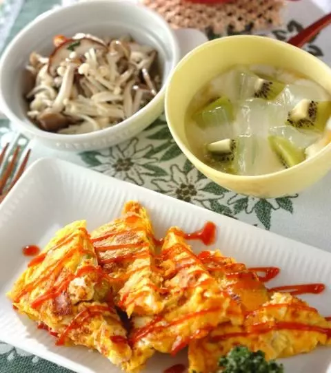 今日の献立は「カボチャ入りオムレツ」を含めた全4品。