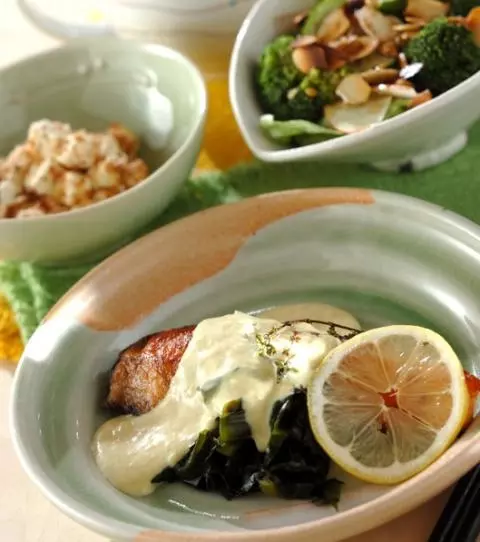 今日の献立は「ホワイトソースがけ鮭のソテー」