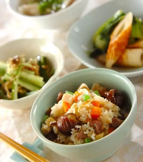 もち米を使ったおこわは、炊飯器にお任せメニュー! 炊いている間に、その他3レシピを完成させましょう。