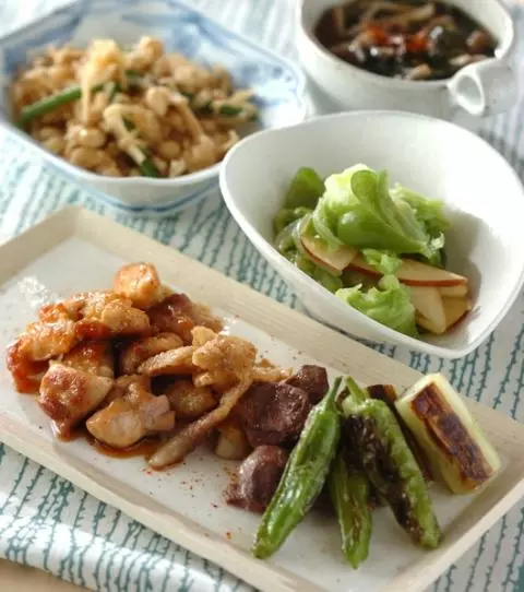 今日の献立は「フライパンで焼き鳥」を含めた全4品。
