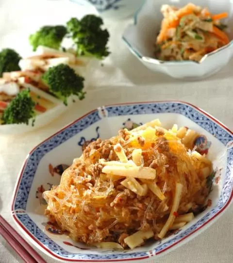食材の旨味をたっぷりと吸った春雨がおいしい! 和え物は粉ピーナッツを使ったアイデアレシピ。