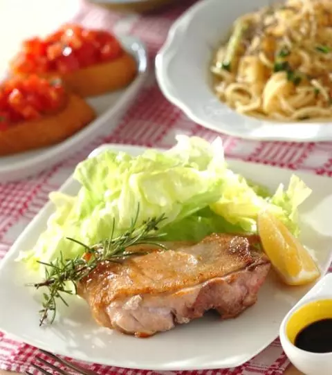 ローズマリー、タイムのハーブが良い香りのチキンソテー。バルサミコ酢でサッパリと。