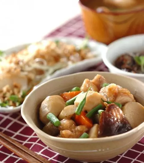 だしが効いた具だくさんの筑前煮。季節の根菜をたくさん食べられる一品。