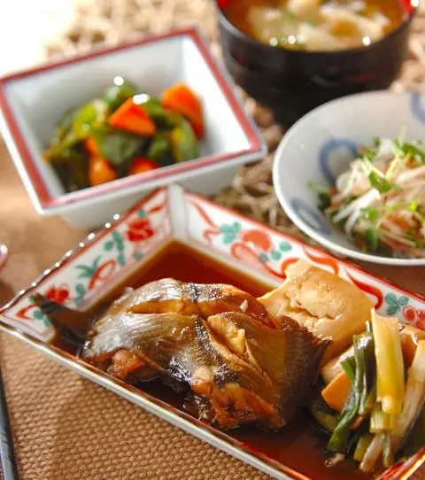 今日の献立は「カレイと青ネギの煮物」を含めた全4品。