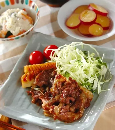 定番のショウガ焼きにタケノコを加えて食感を楽しんで。甘辛いタレでご飯が進みます。