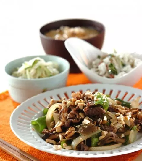 今日の献立は「牛薄切り肉のソース炒め」を含めた全4品。