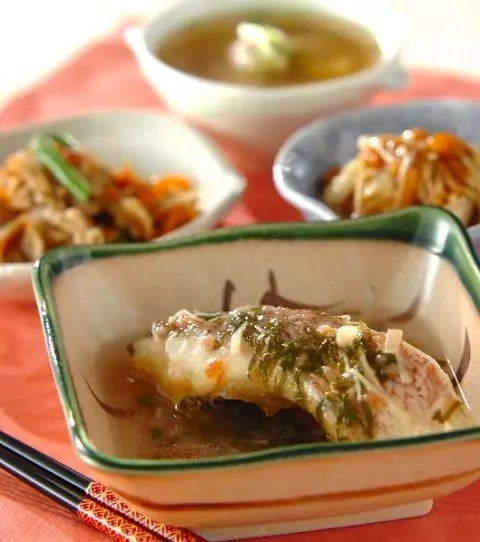 今日の献立は「鯛の梅あんかけ」を含めた全4品。