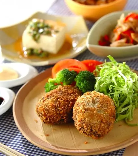 野菜をたっぷりと入れたメンチカツは栄養満点!