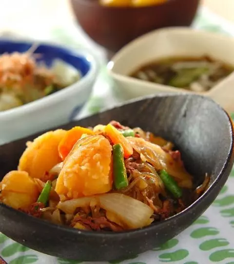 今日の献立は「肉ジャガ風煮物」