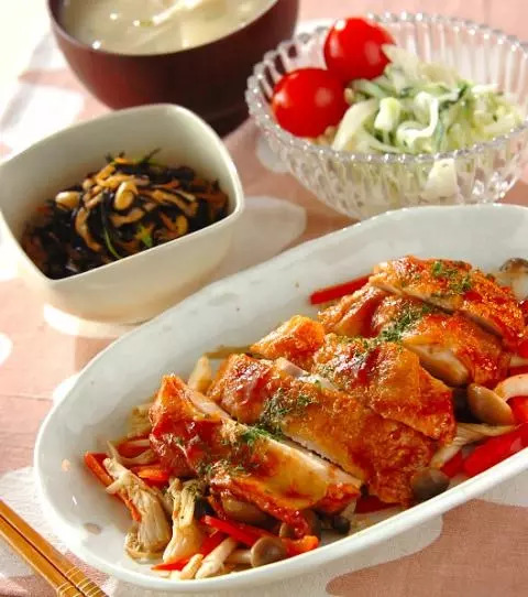 今日の献立は「鶏もも肉のケチャップ焼き」