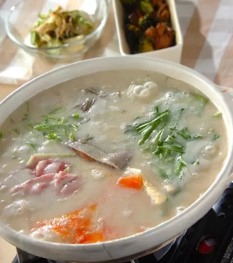 寒さが厳しい季節は、酒粕で体の中からポカポカに。野菜も摂れる栄養満点のお鍋です。