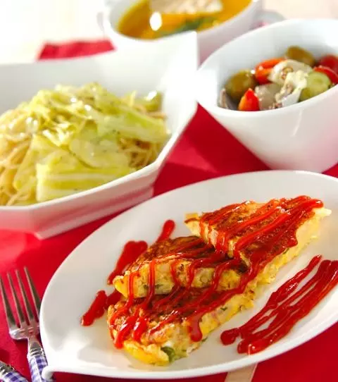 ボリュームがあるふわふわなオムレツは、卵液に生クリームを入れてコクを出しましょう。お好みでタバスコを振るとピリッと引き締まった味に。