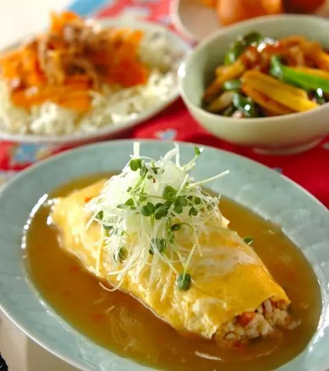 今日の献立は「あんかけオムライス」を含めた全4品。