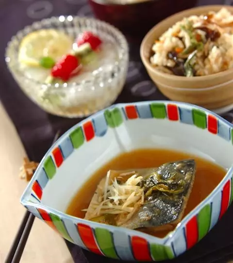 ご飯がすすむサバのみそ煮。ショウガをたっぷりのせてどうぞ。