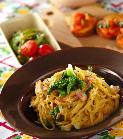 今日の献立は「春のカルボナーラ」