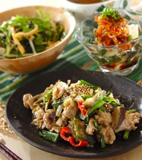 今日の献立は「豚肉とナスのゴマ炒め」を含めた全4品。