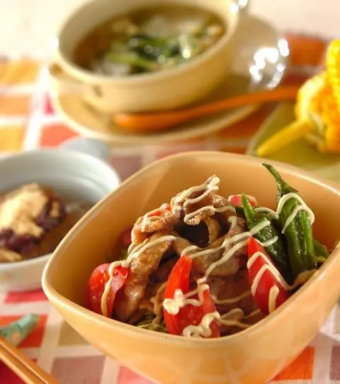 今日の献立は「豚肉のショウガ焼き丼」を含めた全4品。
