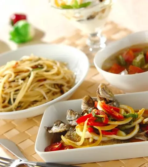 今日の献立は「小アジのカレーマリネ」を含めた全4品。