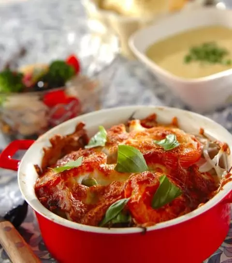 今日の献立は「野菜のこんがりチーズ焼き」を含めた全4品。
