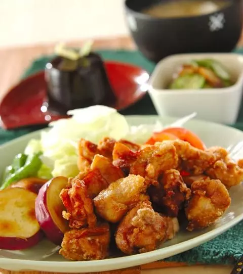 鶏の唐揚げはご飯に合う代表おかず! デザートは黒砂糖を使った寒天デザート!