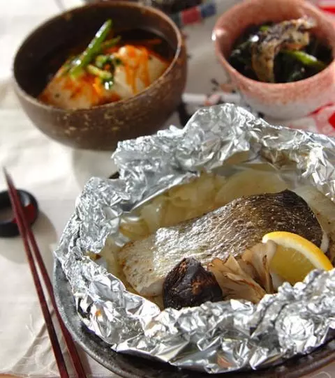 バリエーションが広がるホイル焼きに、野菜あんをたっぷりとかけた豆腐を添えたヘルシーな献立です。