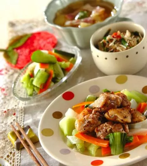 今日の献立は「チキンのペッパー炒め」を含めた全4品。
