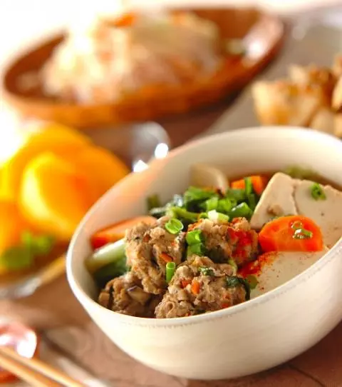今日の献立は「肉団子と野菜の煮物」を含めた全4品。
