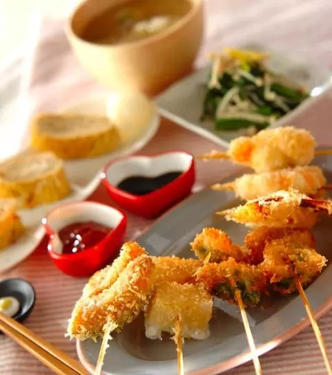 メインはサクサク串揚げ! おだしが決めてのだし巻き卵を添えて。