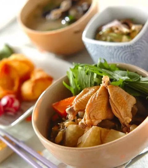 今日の献立は「手羽中と大根の煮物」を含めた全4品。