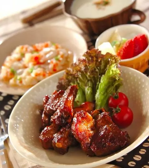 今日の献立は「骨付き豚バラ肉のママレード煮」