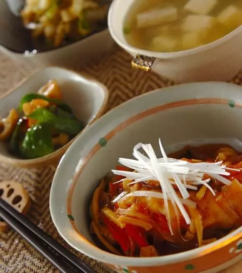 今日の献立は「揚げ魚の甘酢あんかけ」