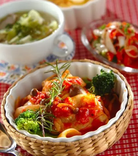 チキンのトマト煮をメインに、おしゃれな4品が勢揃い!