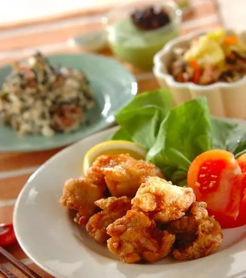 ジューシーな唐揚げにヘルシー白和え。子供から大人までみんなで楽しめるメニューです。