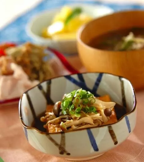 今日の献立は「厚揚げのキノコだしがけ」を含めた全4品。