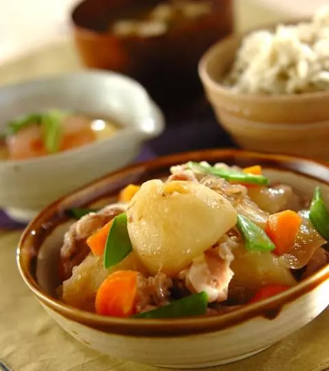 ジャガイモがホクホク甘くておいしい! 今日の肉ジャガは豚肉入り!