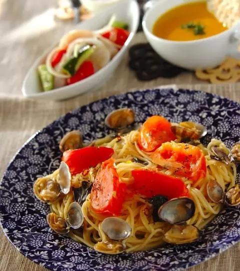 今が旬のアサリを使ったパスタ。トマトとの相性も抜群!