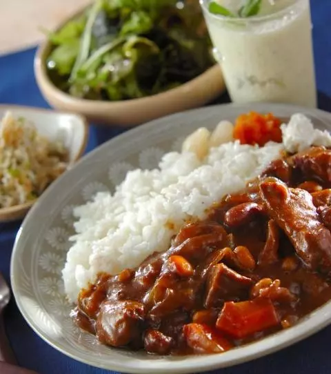 メインは食べごたえたっぷりのビーフカレー! 副菜はサッパリヘルシーな2品です!