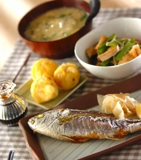 今日の献立は「魚の塩焼き」を含めた全4品。