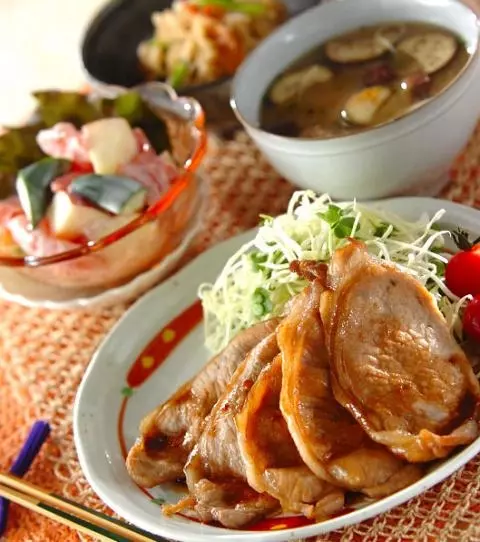 今日の献立は「豚のショウガ焼き」を含めた全4品。