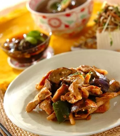 今日の献立は「豚とナスのみそ炒め」を含めた全4品。
