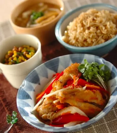 今日の献立は「手羽元の甘酢漬け」を含めた全4品。
