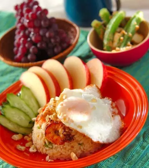 今日の献立は「エビのエスニックチャーハン」