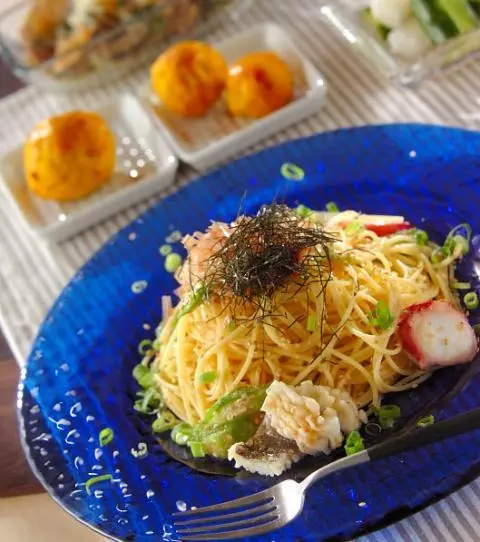 今日の献立は「ハモの冷製明太子パスタ」