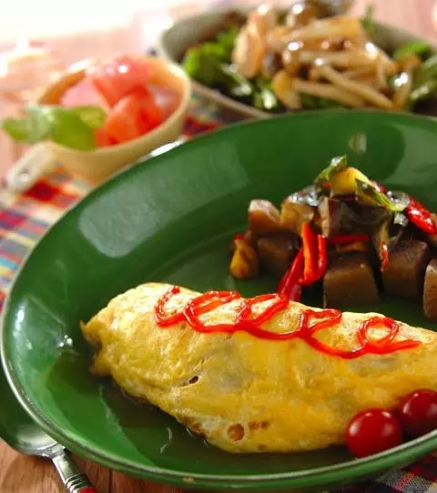 玉ネギと合いびき肉で作る、定番のオムレツ。