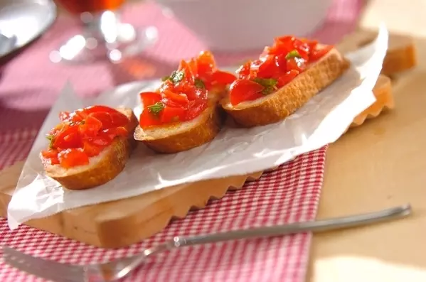 主材料:フランスパン プチトマト ニンニク ミントの葉