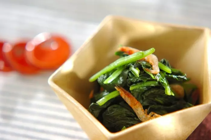 干し桜エビを加える事で香り豊かなお浸しに。
