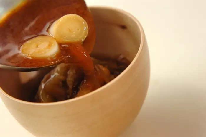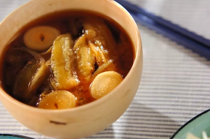 ナスの香ばしさがおいしい! ジュンサイとミョウガの食感の違いもおもしろいおみそ汁。