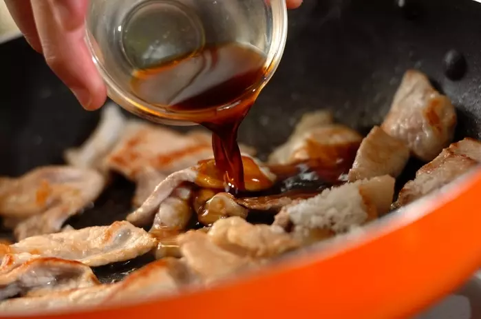 豚肉に下味をからめて、さらに甘辛調味料でご飯が進む一品に!